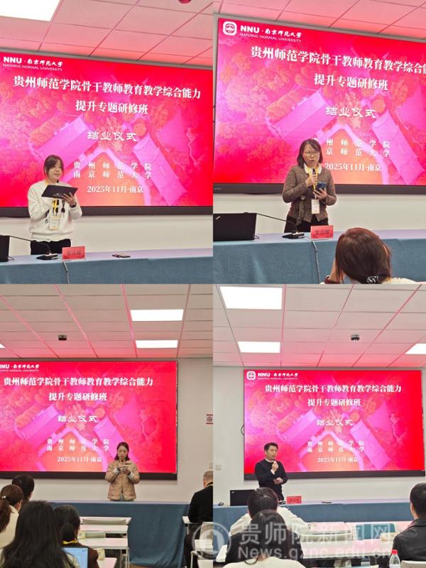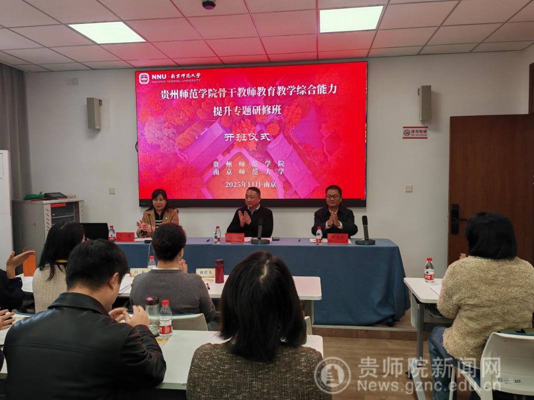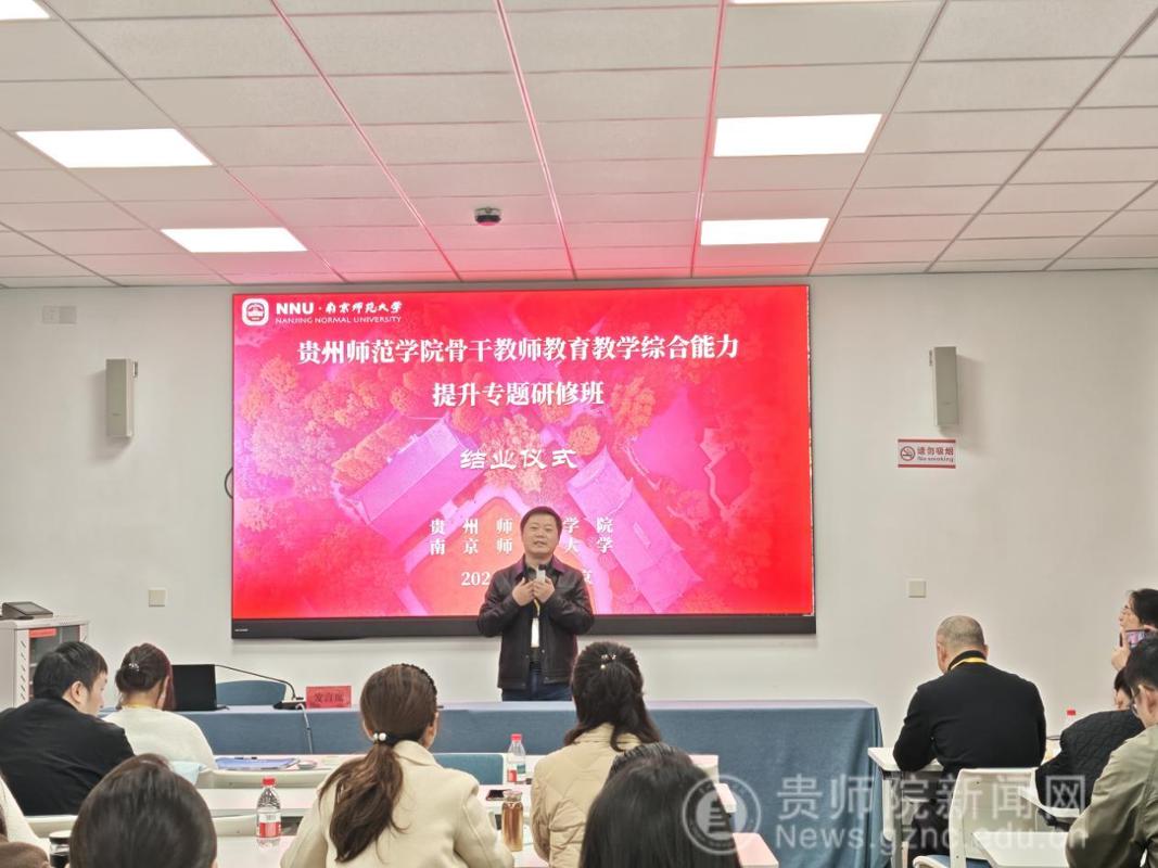 11月23日至11月29日,贵州师范学院骨干教师教学综合能力提升专题研修班在南京师范大学顺利举办。来自全校省级教学、青教赛、教创赛省级以上获奖教师、国家一流课程负责人、青年骨干教师及教学管理和教师培养培训相关部门负责人等47名教师齐聚“东方最美丽校园”——南京师范大学随园校区进行了为期7天的研修学习。11月24日,开班仪式在南京师范大学培训中心举行,南京师范大学副校长岳嵩、贵州师范学院党委常委、副校长罗光杰出席开班仪式,开班仪式由校党委教师工作部部长王茜主持。